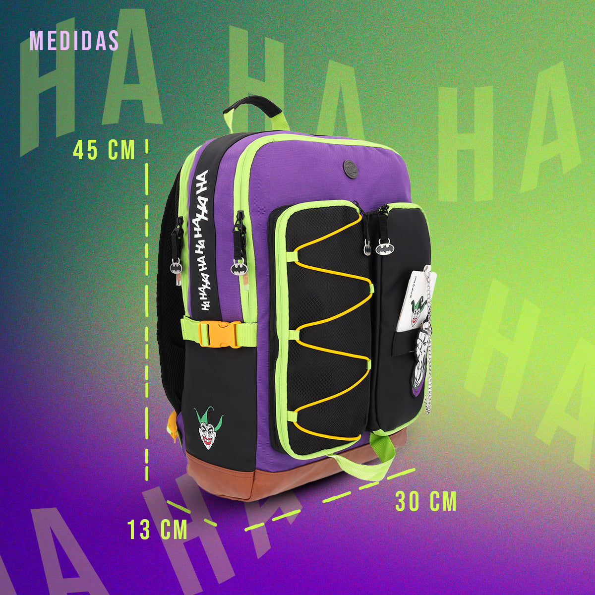 La mochila Joker Carta es perfecta para los amantes de los cómics y el estilo único. Con una placa metálica y llavero coleccionable, esta mochila presenta detalles con serigrafía que no pasarán desapercibidos. Además, su respaldo y tirantes ergonómicos brindan comodidad mientras el porta laptop interno protege tus dispositivos. ¡Haz una declaración de moda con esta mochila increíble!