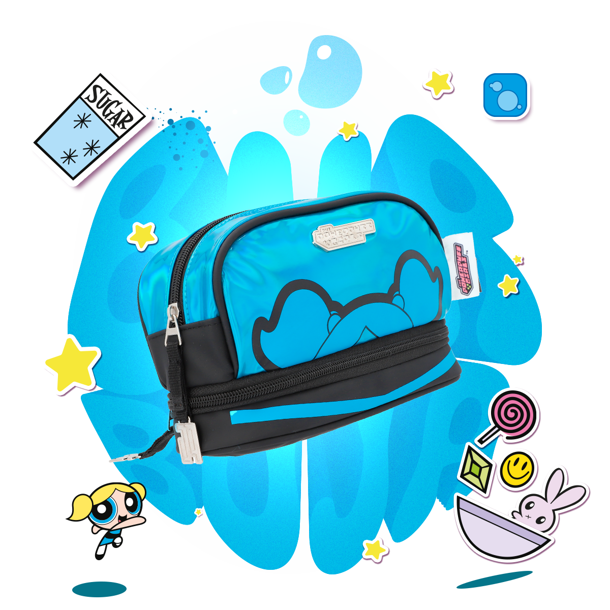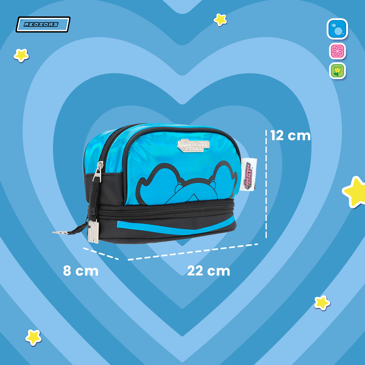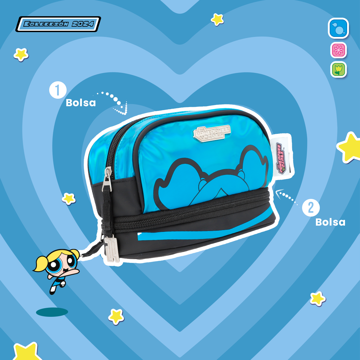 Esta estuchera con doble compartimiento y asa de mano es perfecta para guardar tus útiles escolares de manera organizada. Sus colores brillantes y cierres personalizados le dan un toque divertido y único. ¡Lleva contigo el estilo y poder de Las Chicas Superpoderosas!